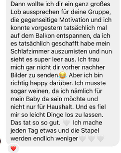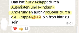 • Zutritt zu meinen 3 exklusiven VIP-Simplifier WhatsApp-Gruppen für 6 Monate mit persönlichen Impulsen und Ausmist-Challenges von mir an dich!